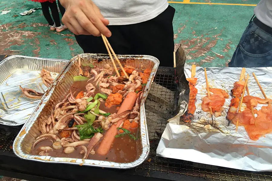 4点30分行政部的同事们早早为大家准备好了丰盛的烧烤食品和饺子皮馅、水果、饮料、啤酒等。在欢声笑语中炊烟袅袅升起,随着公司总经理周德勇高呼:“同事们,干杯!”烧烤晚会正式拉开帷幕。